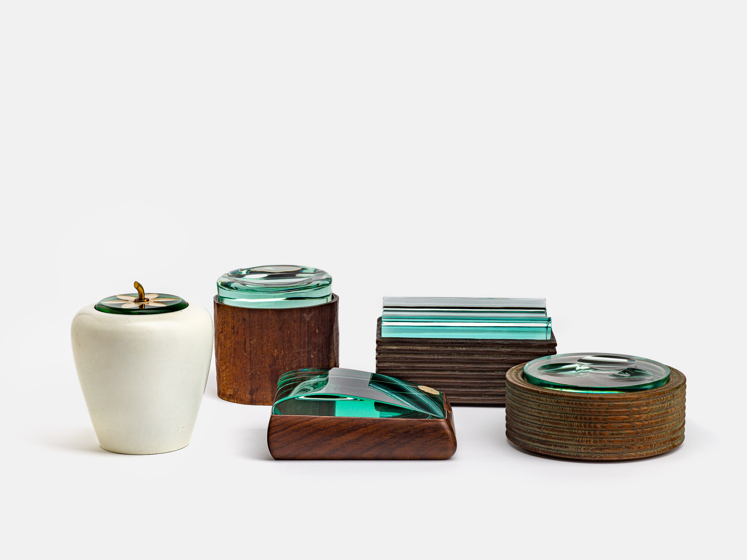 Pietro Chiesa, Scatole, 1939, vetro, legno, ottone laccato, dimensioni varie. Ph. Enrico Fiorese, courtesy LE STANZE DEL VETRO